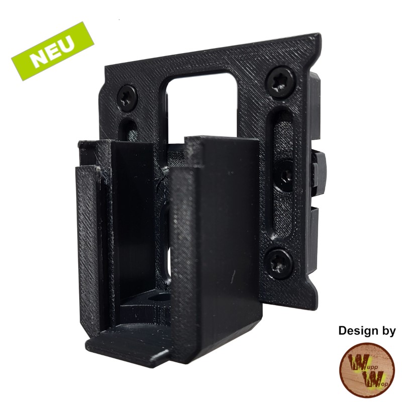 - Bessere Übersicht: Statt lose im Koffer oder Fahrzeug zu liegen, haben alle 12V Akkus einen festen, sichtbaren Platz.